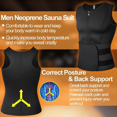 Men Sauna Sweat Zipper Vest Neoprene Corset Waist Trainer Vest Body Shaper Workout Tank Top