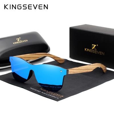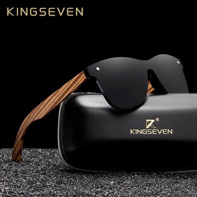 Home > Men's fashion > KINGSEVEN Polarized Square Sunglasses Men Women Zebra Wood Frame Mirror