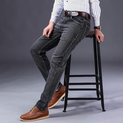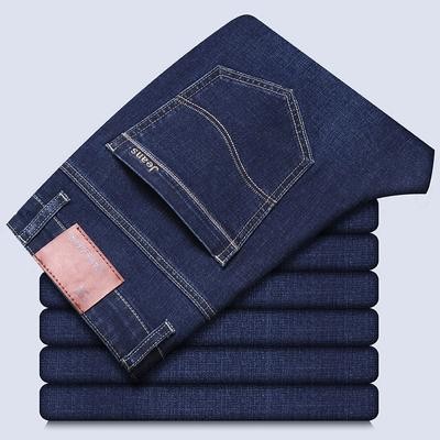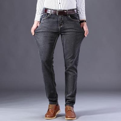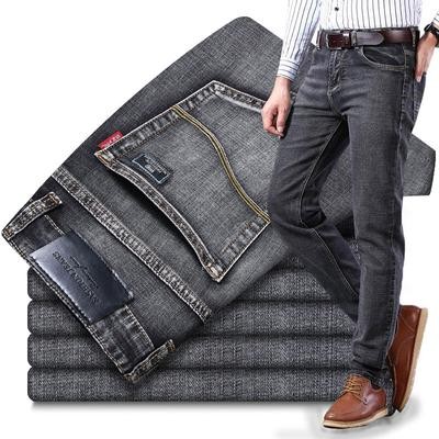 Men's fashion > Casual mid-season men's stretch denim trousers in classic straight fit style