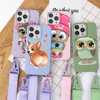 Home > Electronic products > Cartoon Owl Cute Dog Strap Phone Case with Cord for iPhone 13 12 11 Pro Max X