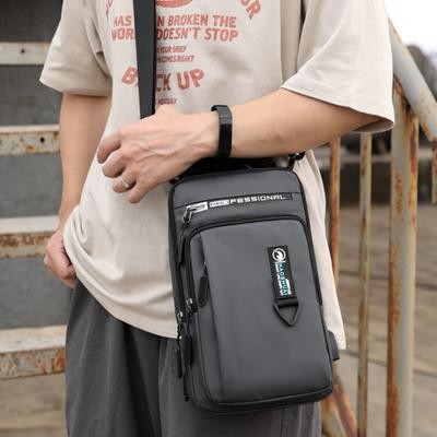 Home > Bags and suitcases > Men Nylon Waterproof Phone Chest Bag USB Small Crossbody Sling Bag Backpack Single pl
