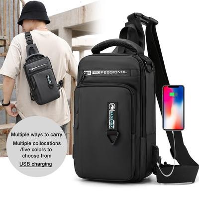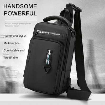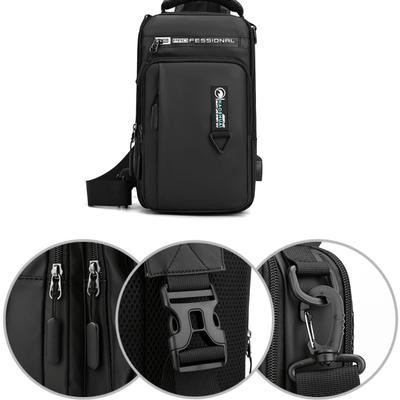 Men Nylon Waterproof Phone Chest Bag USB Small Crossbody Sling Bag Backpack Single pl