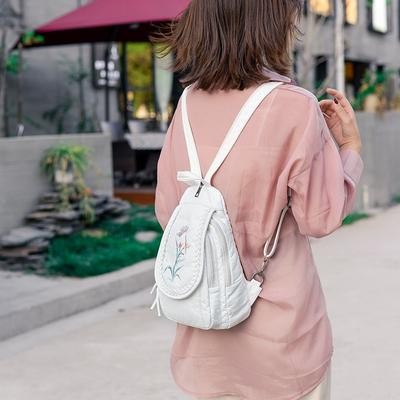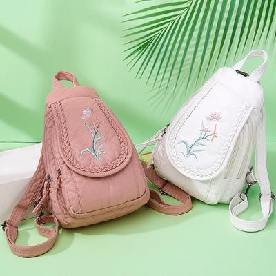 High Quality Leather Women Backpacks Fashion School Bags for Teenage Girls White Backpack Embroidery