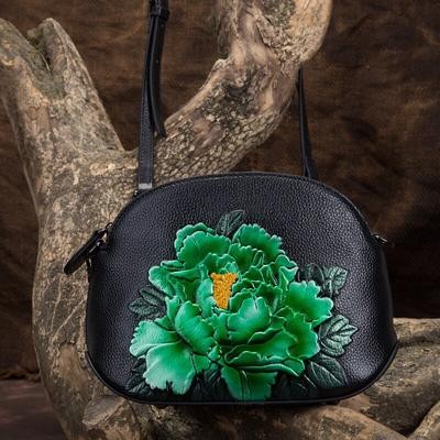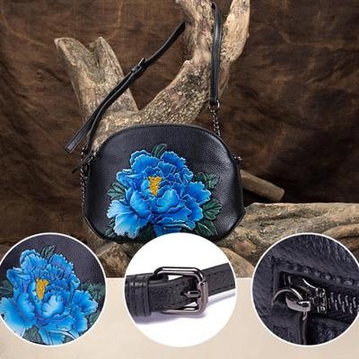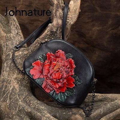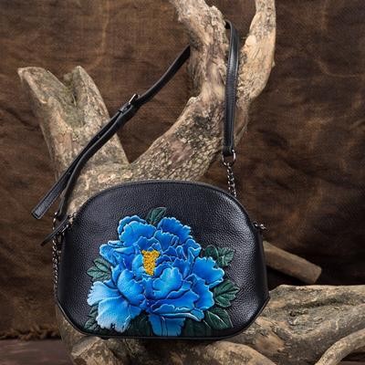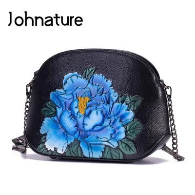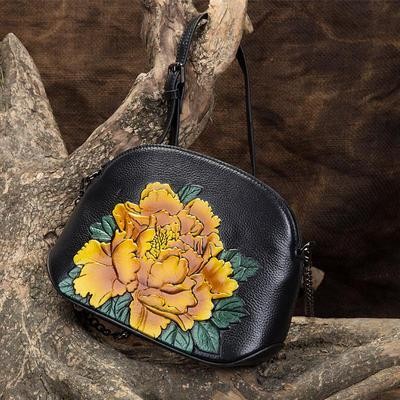 Bags and suitcases > Shell Chain Bag Women Shoulder and Crossbody Bags Retro Sweet Genuine Leather Embossed Floral