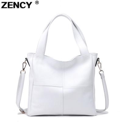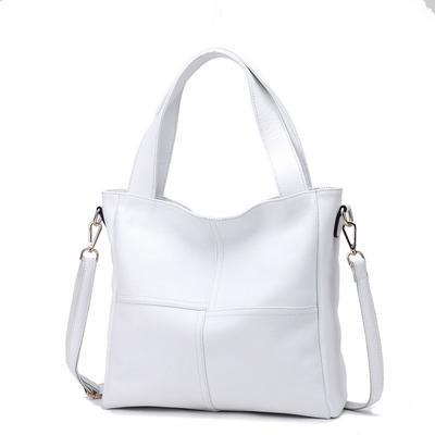 Women's genuine leather shoulder bag in patchwork style with two handles and a long strap