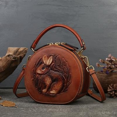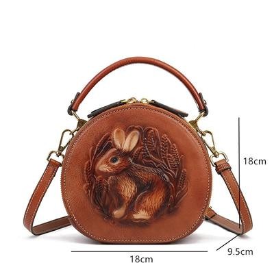 Rabbit Embossed Handbag Genuine Leather Retro Women's Bag Versatile Real Cow Leather Bag
