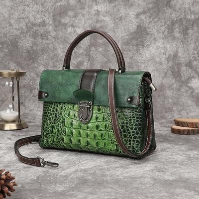 Retro Alligator Pattern Bags Women Bags Genuine Leather Hand Painted Shoulder and Crossbody Bags