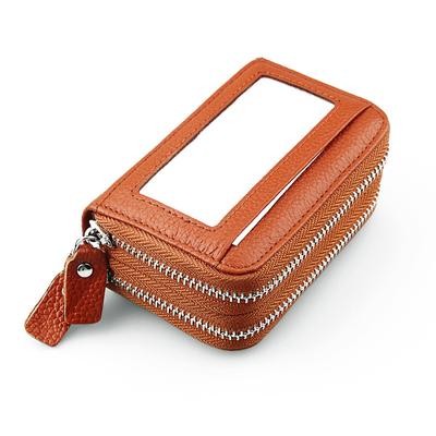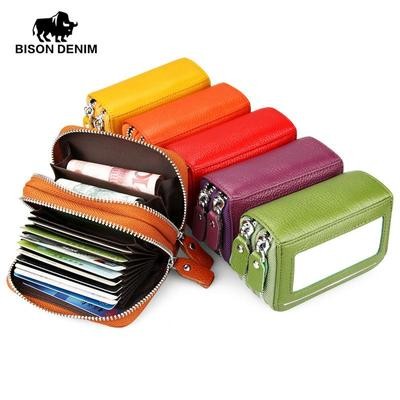 Fashion Women Genuine Leather Credit Card Holder Wallet Large Capacity Double Zipper Female