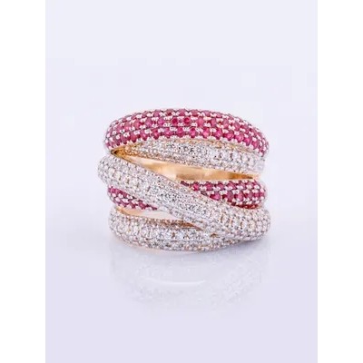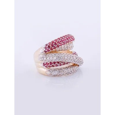 Women's yellow gold ring585samples with natural diamonds and rubies.Product Feature:weight13G, 125round natural diamonds- 1.88 ct 4/5A, 108rubies- 1.94 ct.Weights and specifications are average valuesand may differ slightly from actual ones..Our jewelry undergoes the testing and branding procedure of the RussianGState Assay Office.The hallmark is applied using a laserGalignments.Each product is assigned a UIN(unique identification number),which is applied to the label of marked jewelry.Using it you can get reliable information about the jewelry on the official website of the Russian State assay office.Diamonds undergo independent testingGemmological examination in the laboratory of Moscow State University.The decoration comes complete with branded packaging:jewelry case,branded package and a small compliment.We work for you with2007GOh yeah.