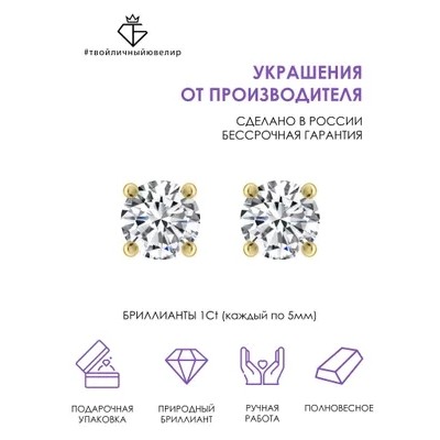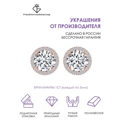 Gold studs-studs with diamonds from the brand TWO PERSONAL JEWELER are filled with powerful energy-suitable for girls and women,who choose brightness and effectiveness.Luxurious and at the same time laconic jewelry,made of white gold585samples,will highlight your uniqueness and open up new opportunities for stylish experiments.Gold item plated with rhodium,which enhances shine thanks to its reflective properties.Diamonds are used as an insert in the earrings,capable of shimmering in the light with all the colors of the rainbow and producing an incredible shine ,giving its owner femininity and elegance.Designer stud earrings,made by experienced Russian jewelers,equipped with a convenient and reliable screw fastener,which ensures a strong fixation of the jewelry on your ear.The type of design makes gold earrings the most comfortable- they don't interfere with dressing,do not catch hair and,with the correct size selection,do not cause discomfort during sleep.It is for this reason that gold earrings are often chosen not only for adult girls,but also for little fashionistas. Thanks to the minimalist,thoughtful earring design-carnations can be easily combined with any other jewelry and outfits.Such gold studs will never go out of fashion and will always be relevant.Earrings-carnations–some of the most popular models,they are universal ,and they are easy to choose for any type and image,fashion style,owner's age.Neat and practical studs with diamond-This is a universal decoration for any look:at a business meeting in combination with formal office attire,on a romantic date ,and even at a luxurious reception.The small size of the earrings emphasizes the femininity of the owner and her elegance under any circumstances.Diamond studs suit everyone without exception:blondes and brunettes,dark and light-skinned girls,blue-eyed and brown -eyed.If you want to be the center of attention or are looking for decoration for a special event,then earrings with precious stones—this is your option!The studs come in branded packaging and are ideal as a wonderful gift for a special date or just because,to delight and surprise your beloved wife,mother or daughter and leave a lasting impression.Buying jewelry from a handmade manufacturer,you get a lifetime warranty!With love and care for you,YOUR PERSONAL JEWELER!