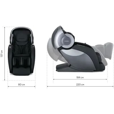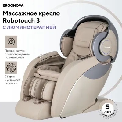 Massage chairErgonova Robotouch 3 High-Endin the world of anti-stress systems!The world's first chair with luminotherapy and aromatherapy!Unique technology-Retractable canopy.Patented retractable canopy technology is designed to completely create your lounge area.This function"patented"and allows you to transform it from just a massage chair into a full-fledged lounge-zone.4D Robotouch System.New technology4D Robotouch System —This is a unique three-dimensional roller movement,that is unlike any other chair on the market.Massage rollers followS -figurative trajectory,which imitates the natural curvature of the spine.DesignS-Trackguarantees,that massage rollers can reach every part of your spine,straight from the base of the head to the tailbone,to give you the feeling of a full body massage, which will energize and stimulate muscles.Unique stretch2-way stretch technology 3.Twisting the body with a twist-stretching,which allows you to make your waist slim,and an expressive figure.air-compression massage. 72air cushions are located like this,so as not to leave any part of the body unattended.Pads softly,but persistently affect different areas of the body,launching healing processes in the body.Foot massage on360degrees.Circular heating of feet with technology support360° warm foot massage accelerates blood flow and enhances the relaxing effect of massage.Two pairs of rollers massage the feet,balls massage the heels,and pillows are responsible for compression massage.The automatic foot length detection system allows you to achieve the most comfortable sensations during a massage ..Antistress-luminotherapy technology.Innovative technology in the world of massage chairs.Phototherapy with blue light will put your body into relaxation mode,will help synchronize with his biological rhythms and improve the quality of sleep.6automatic massage programs:Active Shujing (Shujing Active)/Back stretch(Back Stretching)/Good night(Sleeping Massage)/Breathing massage(Breathing)/Neck and shoulders(Neck and Shoulder)/Beautiful buttocks(Beautiful Butt Shaped).Additional programs:Jacuzzi(Blu-ray bath) /Musical spa(Music SPA)/Aromatherapy(Fragrant health).Infrared heating of the back and calves for even greater relaxation.Heated massage will become more effective and enjoyable.And in the cold season, this function will be a pleasant bonus .. Carbon fiber is used as a source of infrared radiation-valuable material with expensive components and unique properties.2weightlessness.Thanks to the functionZero Gwith one press of a button you will go into a zero-gravity position-the best position to relax the body. The legs are slightly higher than the head,and the load on the spine is distributed evenly.A new level of sensations with aromatherapy.INErgonova RoboTouch 3 Universethere is a special block for aroma oils,thanks to which you can experience even more pleasure and improve your condition.AromatherapyHelps cope with headaches and depression,regain self-confidence and improve your mood.Feel the cosmic pleasure with Ergonova RoboTouch 3!*Chair weight: 168kg.Dimensions(DxWxH): 184x80X137cm.Dimensionsunfolded(Zero-G): 220x80X137cm. Doorway width- 81cm.**Delivery and assembly is carried out by the companyErgonova.