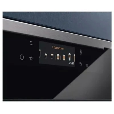 coffee machineElectrolux KBC85Xhas the following advantages:Automatic milk frothing system–in the coffee machineElectrolux KBC85Xa special milk frothing system has been installed,which allows the device to prepare perfect lattes,cappuccino,flat white and other options of coffee-based milk drinks with strong and rich foam.Adjusting the coffee strength–using a convenient touch display you can adjust the required amount of coffee in this way,so you can choose the perfect drink strength.Settings can be saved and then activated for different users–This is an extremely important feature for families.,where several people at once like to drink aromatic coffee throughout the day.Automatic coffee grinder–in the coffee machine has a built-in coffee grinder,thanks to which you can load whole coffee beans into it and drink the freshest possible drink with the brightest and richest taste.Coffee bean tank full indicator–Sophisticated style–The coffee machine has a minimalist design and will fit perfectly into any kitchen interior–black matte panels,straight lines and no unnecessary details or additional elements.Stainless steel moving parts Antifingerprint –mechanical buttons and other elements of the machine are made of unpainted stainless steel,What,in-first,has a beneficial effect on the durability of the product,Ain-secondly, the coffee machine will have an expensive and sophisticated appearance .
