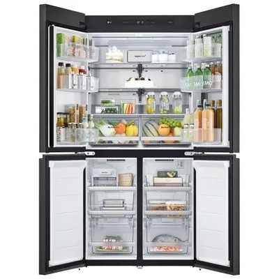 InstaView: Knock twice and see what's inside with the latest generation of InstaView technology. Features: Sleek design, replaceable panels Various colors: mint, beige, silver InstaView technology Inverter Linear Compressor DoorCooling+ technology Hygiene Fresh+ Hygienic filter General data: Dimensions: height (cm): 186 width (cm): 91.4 depth (cm): 68 Total volume/Usable volume: Refrigerator (l): 684/527 Refrigerator compartment (l): 404/382 Freezer compartment (l): 280/145 Control type: electronicEnergy consumption class: A+Climate class: T (from +18°C to +43°C)Number of compressors: 1Annual energy consumption: 365 kWhColor: beige glassRefrigeration compartment:Shelves made of impact-resistant glassFolding shelfDoor baskets: 6Multi-flow cooling system Multi Air FlowNo Frost system (Frost Free, No Frost) LED lighting (top and side) Metal back wall Metal Fresh Door Cooling + Egg tray Drawers for fruits and vegetables: 2 Hygiene filter Hygiene Fresh + Metal edging of shelves Metal edging of drawers Freezer compartment: No Frost (Frost Free) system , No Frost) LED backlight Express freezing Transparent drawers: 6 Ice tray Metal edging of drawers Additional information: Display: Touch external Linear compressor Horizontal hidden handle Easy opening Noise level: 38 dB Refrigerant: R600a Door open alarm Intelligent diagnostic system Smart Diagnosis Control via Wi-Fi Anti-tank terial door sealant Bio Shield